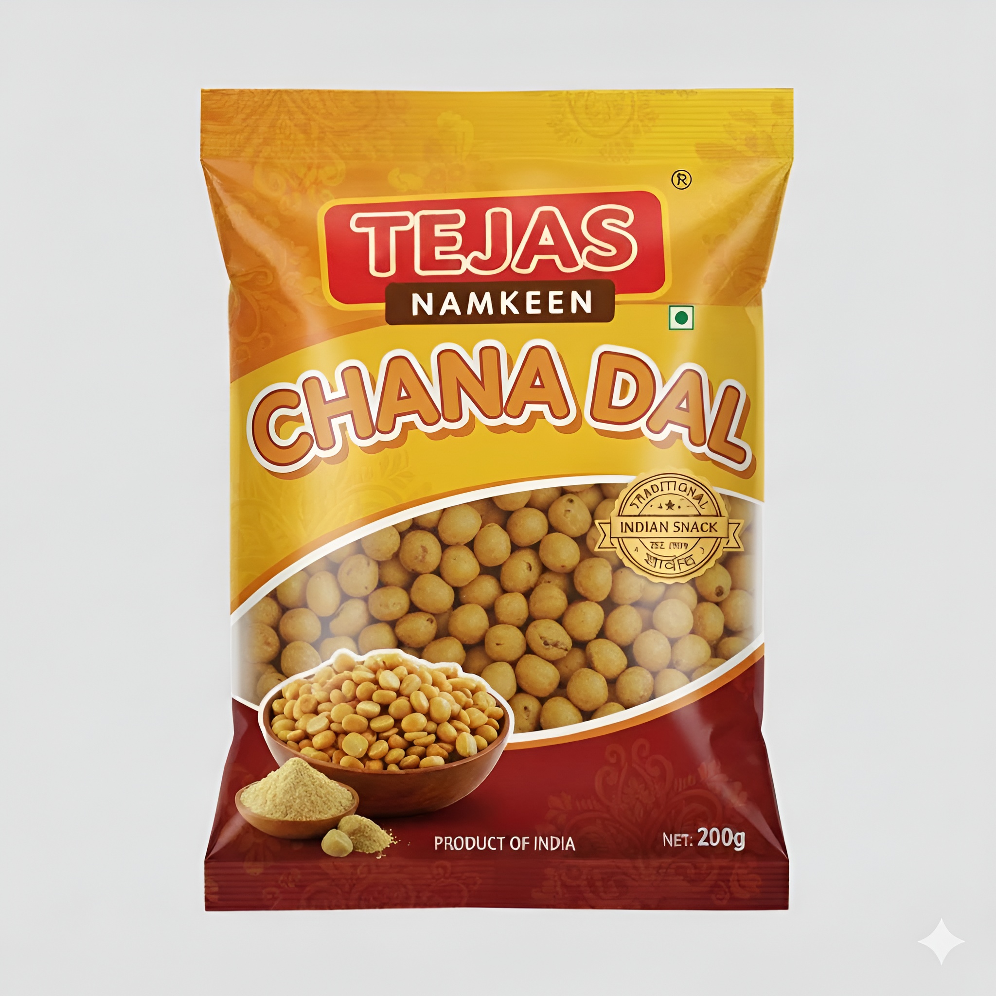 Protein-rich crunchy chana dal snack.
