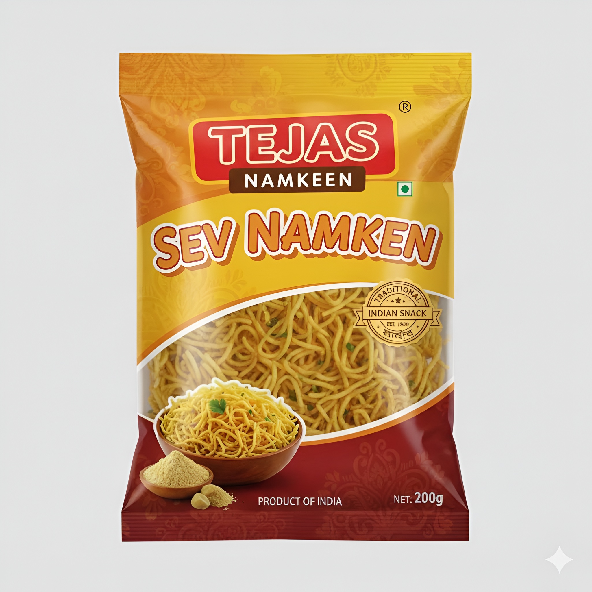 Golden fried sev with authentic Indian taste.
